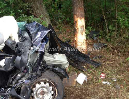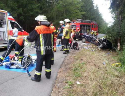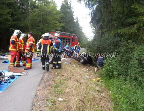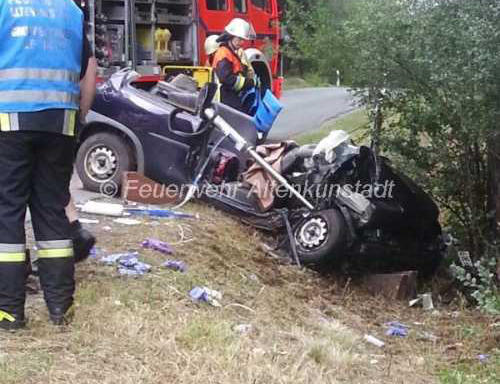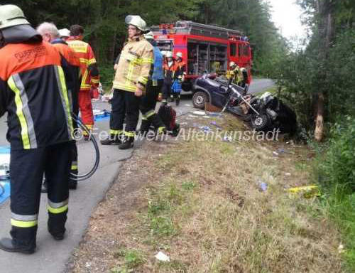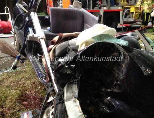 der Feuerwehr Altenkunstadt aus seinem Fahrzeug befreit werden.