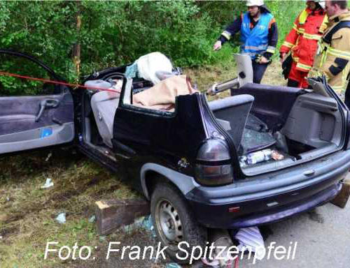 Mit Rettungsschere und Spreizer musste ein 21-Jähriger, der am
