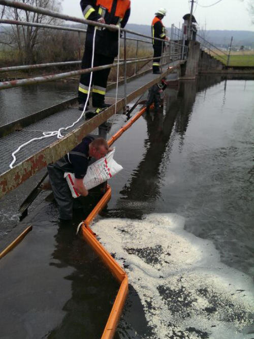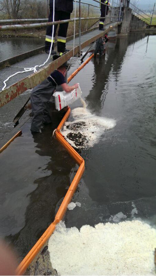 Auslegen zweier Ölsperren im Mühlbach in Burgkunstadt