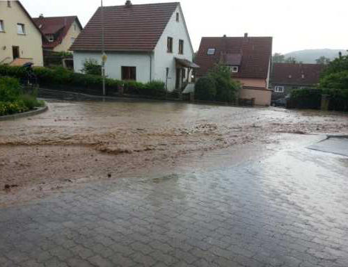 Keller unter Wasser in der Franz-Joseph-Ahles-Straße und Spiesberger Str.
