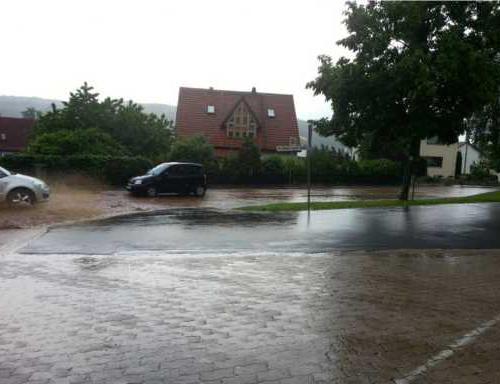 Durch sturzartige Regenfälle kam es im Bereich des FW Hauses