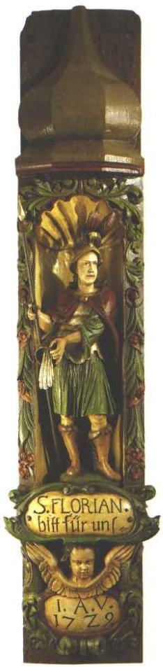 Sankt Florian - Schutzpatron der FeuerwehrenAm 4. Mai begehen alle Floriane, Florentins,Flroenstans, Floras, Florences usw. in Erinnerung anihren Schutzpatron, den heiligen Florian, ihrenNamenstag. Gleichzeitig feiern unzähligeFeuerwehren ihren Patron, der in vielen Ländern auchals Schutzheiliger der Bierbrauer und Kaminkehrerverehrt wird.Der Hilferuf "Beschütze mein Haus" an denbekannten und beliebten Heiligen geht auf das Lebenvon St.Florian zurück. Florian war der höchsteBeamte des römischen Stadthalters von Norikum,dem heutigen Ober- und Niederösterreich. Er warSoldat und hatte die damaligen Grenzen zuüberwachen. In Rom regierte zu gleicher Zeit derenergische Staatsmann und Kaiser Diokletin. Er ließzur damaligen Zeit im 3. Jahrhundert alle Christenverfolgen. So auch Florian. Als seine Kameraden inLorch hingerichtet werden sollten, weil sie sich zuChristen bekannten, wollte er das Leben seinerKameraden retten. Er wurde jedoch selbst mitangeklagt und grausam gefoltert. Schließlich wurdeFlorian am 4. Mai 304 gefesselt auf die Brückegeschleppt, die über den reißenden Fluss Ennsführte, und von dort hinunter gestoßen.Nach dem Stoß ins Wasser ging Florian - der Sagenach - nicht gleich unter. Er wurde von den Wellenauf den Felsen am Fluss getragen. Ein Adler ließ sichdort nieder und beschütze den Leichnam. Eine Frau,der der Heilige im Traum erschiennen, fand ihn undbeerdigte ihn in ihrem Garten. Dort entstand späterdie heutige Wallfahrtskirche Sankt Florian.Als Schutzpatron wird Sankt Florian meist alsrömischer Soldat dargestellt, der in der Hand einenWasserkübel trägt. Man findet sein Bild an vielenHäusern, auf Brunnen und an einigen Kirchenaltären.Im Feuerwehrgerätehaus von Altenkunstadtwacht eine besonders schöne, Holzgeschnitzteund bemalte Figur im Treppenhaus. Dieser SanktFlorian stammt aus der 1973 durch Brandvernichteten Rohrmühle in Röhrig. Die 250 Jahrealte Figur wurde bei der Feuersbrunst gerettet,von der Freiwilligen Feuerwehr Altenkunstadt inObhut genommen und mit erheblichenvereinseigenen finanziellen Mitteln von JosefMilz restauriert. Sie ist aus einem Balkengearbeitet, liebevoll im Detail gestaltet undheute Schmuckstück des Feuerwehrgerätehausin Altenkunstadt.Die Mitglieder der Freiwilligen FeuerwehrAltenkunstadt gedenken seit 1978 jährlich am 4. Maiihrem Schutzpatron, dem heiligen Sankt Florian.